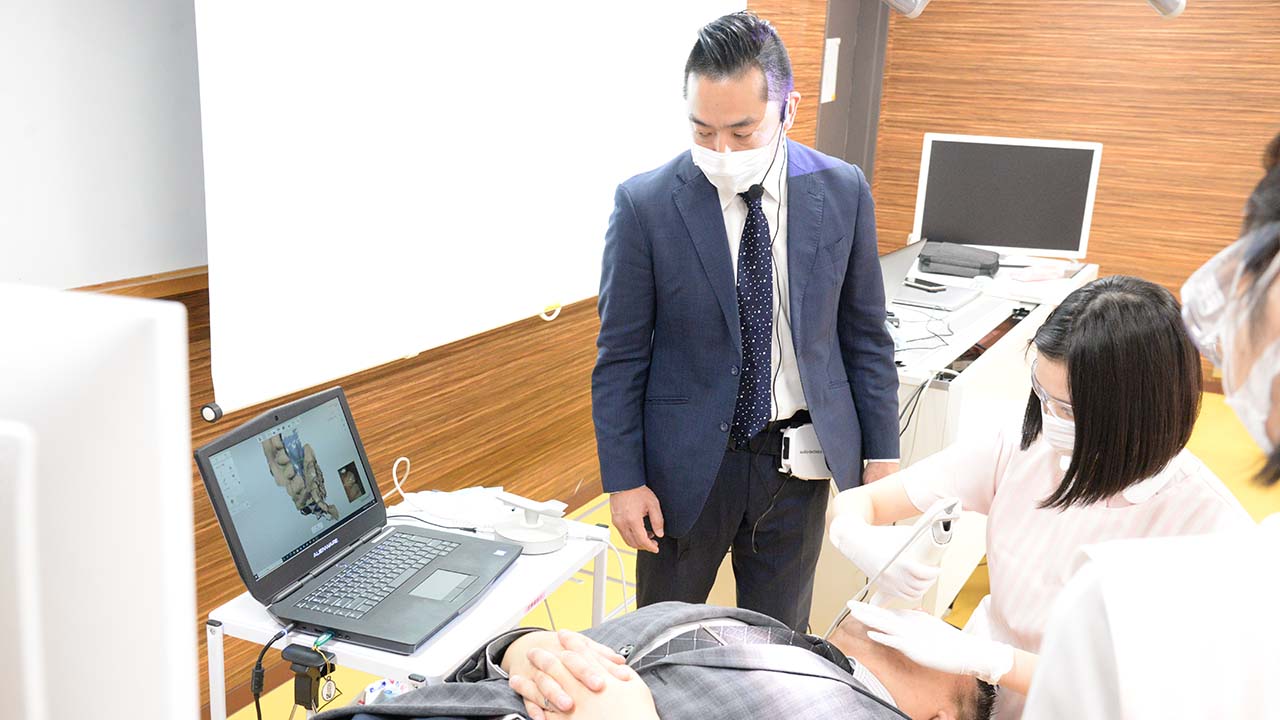 今回は、歯科衛生士を志す学生様に向けて、最先端の歯科医療機器に触れていただきたいという学校様、企業様、当グループの三者の願いから、連携した授業の開催が実現しました。