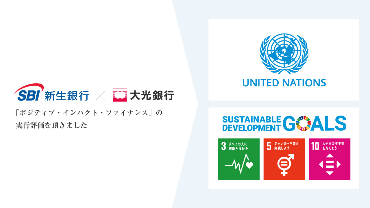 当グループでは、2023年3月31日付で大光銀行およびSBI新生銀行を貸付人とする「ポジティブ・インパクト・ファイナンス」の実行評価を頂きました。