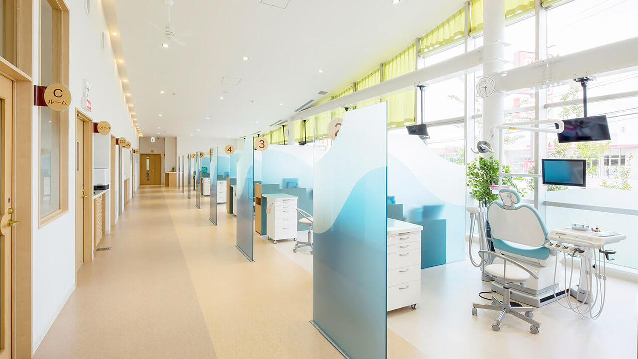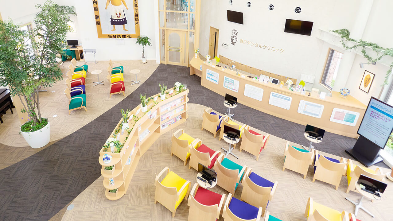 「春日デンタルクリニック」では、虫歯をはじめ、義歯、矯正、インプラントなど、あらゆる分野の治療をご提供し、地域の皆さまに寄り添ってまいります。オープンユニット(診察室)8 台、個室 3 ヵ所、外科室、消毒滅菌室等があり、マッサージコーナー、カフェコーナー、キッズルームを完備。最新の治療設備・消毒滅菌設備を完備しており、隣接する施設には、保育所があります。保護者さまが診療の間、お子さまの一時預かりサービスも実施していることから、お子さま連れの方も安心してご来院いただけます。