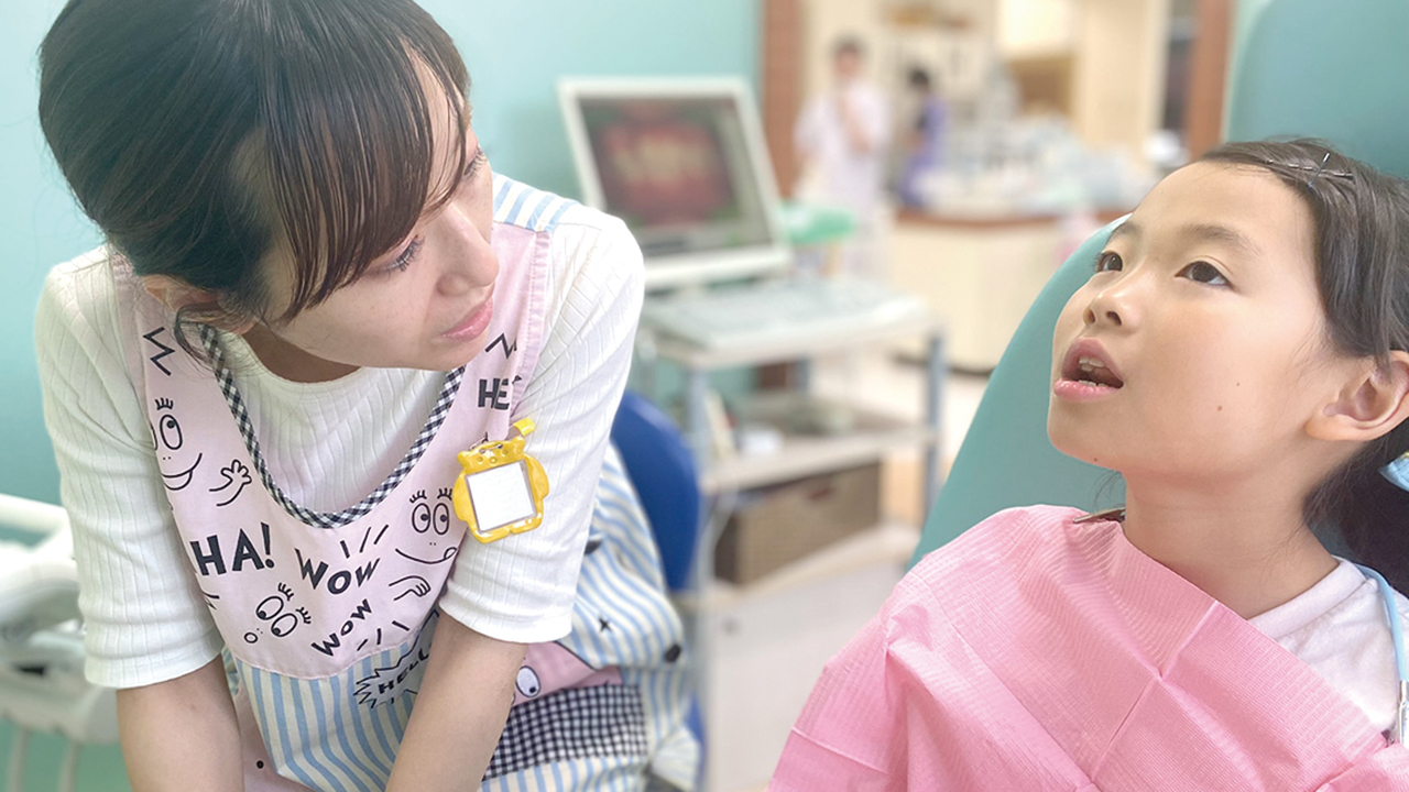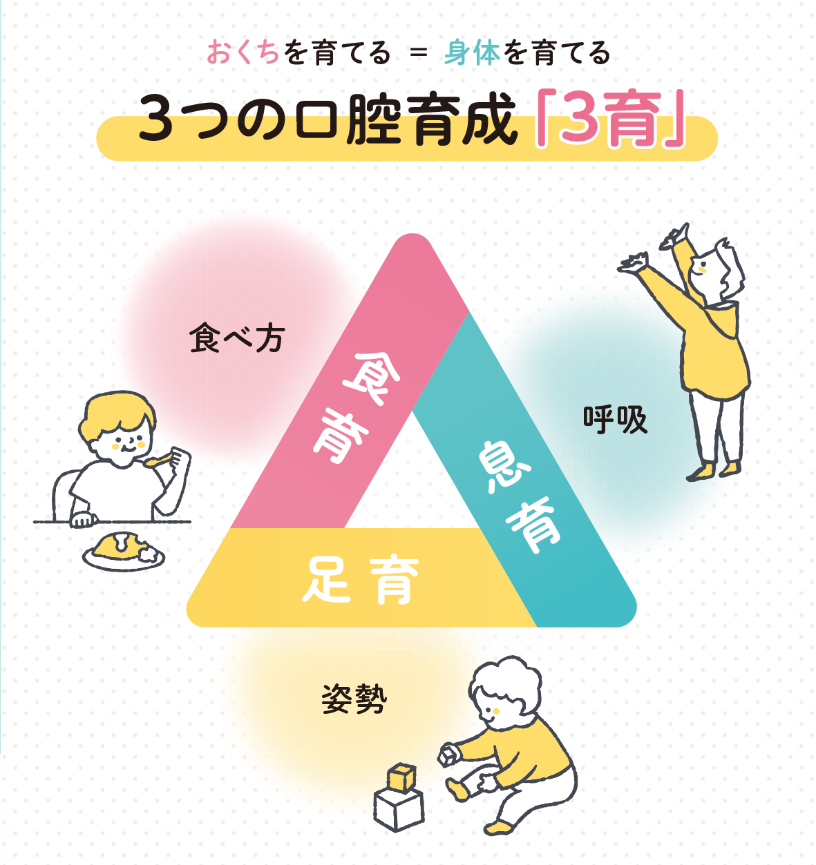 お子さまが無理なく行える口腔機能や身体の機能改善を目的としたトレーニング。 正しい呼吸と、おいしく何でも食べられるお口を目指します。