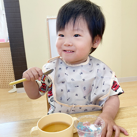 当保育所は完全給食で、自園調理を行っています。また、おやつもご用意させていただきます。
